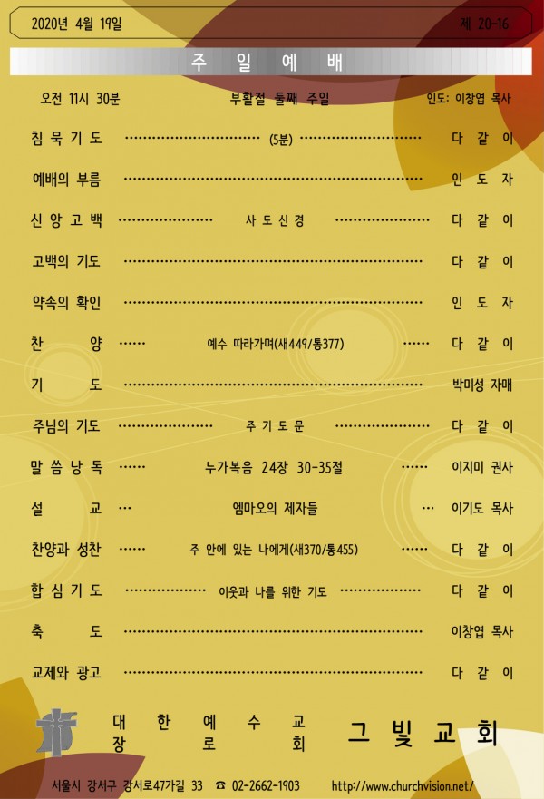 2020년 4월 19일 교회예배 알림